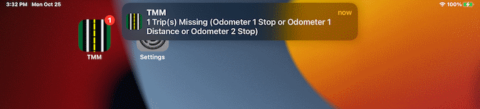 The notification reminds you if any of your trip(s) have incomplete information, so you can fix them.