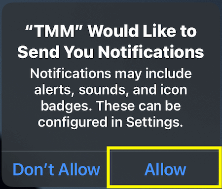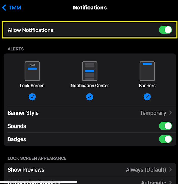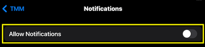 Then tap the Notifications row, in the "ALLOW TMM TO ACCESS" section
