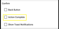 Update the "Action Complete" checkbox.