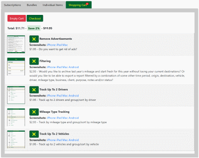 3. Next click the Shopping Cart tab, then remove the items you do not want by clicking the button. When you are ready, click the Checkout button to complete the purchase