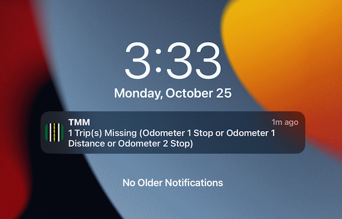 The notification reminds you if any of your trip(s) have incomplete information, so you can fix them.