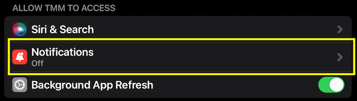 Then tap the Notifications row, in the "ALLOW TMM TO ACCESS" section