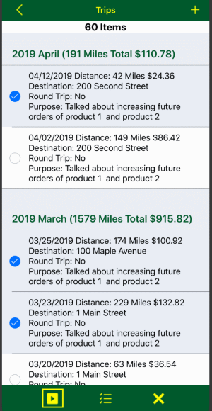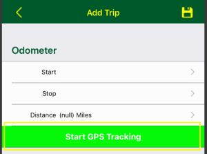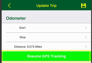 Note: Continued use of GPS running in the background can dramatically decrease battery life. First, read the Improving GPS accuracy section in the How does GPS Tracking work help item. To start tracking, add or update a trip then scroll down to the Odometer section then tap the Start GPS Tracking row. Doing this will clear any existing odometer start, stop or distance entered manually. To stop tracking, tap the Stop GPS Tracking row or the button or tap the button. If the trip has already been tracked by GPS you can resume tracking from the last captured position by tapping the Resume GPS Tracking row You will be given the option to continue from the last captured position by tapping the Add To Existing button or you can clear the previous tracking and start fresh by tapping the Reset Existing button. While the trip is being tracked by gps, it is automatically saved periodically, so you can edit any of the fields except the odometer start, stop or distance. But we recommend when you are done with tracking your trip mileage by gps that you tap the Update button to assure the latest trip information is saved. Also to ensure the best mileage tracking by gps, you should remain on the edit trip page in the app. This is not to say you cannot answer a call, check your email or start another app because Track My Mileage should continue to run in the background but depending on the settings on your device it may not and since the operating system may terminate the app when it is in the background, we recommend keeping Track My Mileage as the active app as much as possible.