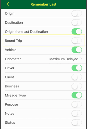 The round trip feature allows you to flag a trip as being a round trip. Additionally if you are calculating mileage reimbursements, you can choose to have the reimbursement amount automatically doubled. By default these features are disabled, to enable them: