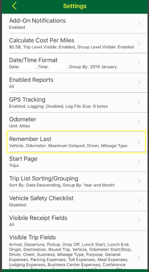 - Goto the settings page and scroll down to and tap the Remember Last row