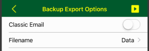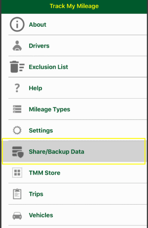 or button to show the main menu, then tap the "Share/Backup Data" row.