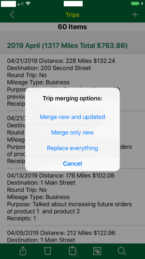 - Track My Mileage will launch, then choose the merging option that meets your needs:
