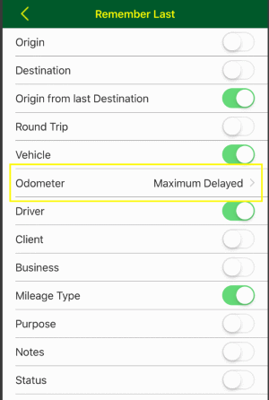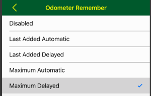 - Maximum Added Delayed: causes the app to remember the maximum odometer value you added for the selected vehicle only when you edit the odometer start.