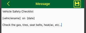 - Then type in your checklist. Add the vehicle name and/or date placeholder shown below to have the vehicle name and/or date merged into your checklist.