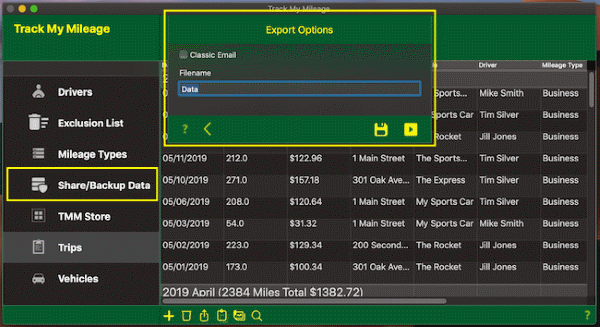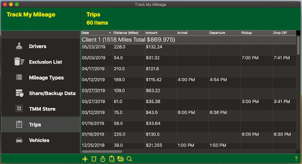 Buying this add-on allows you to generate reports with total mileage and total reimbursement for each client.