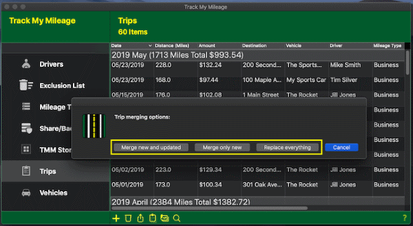 - Track My Mileage will launch, then choose the merging option that meets your needs: