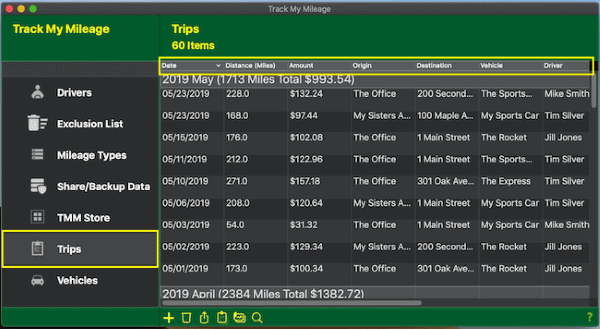 1. Click Trips, then click any of the column headers to sort your trips, click the same column to sort in the opposite direction.